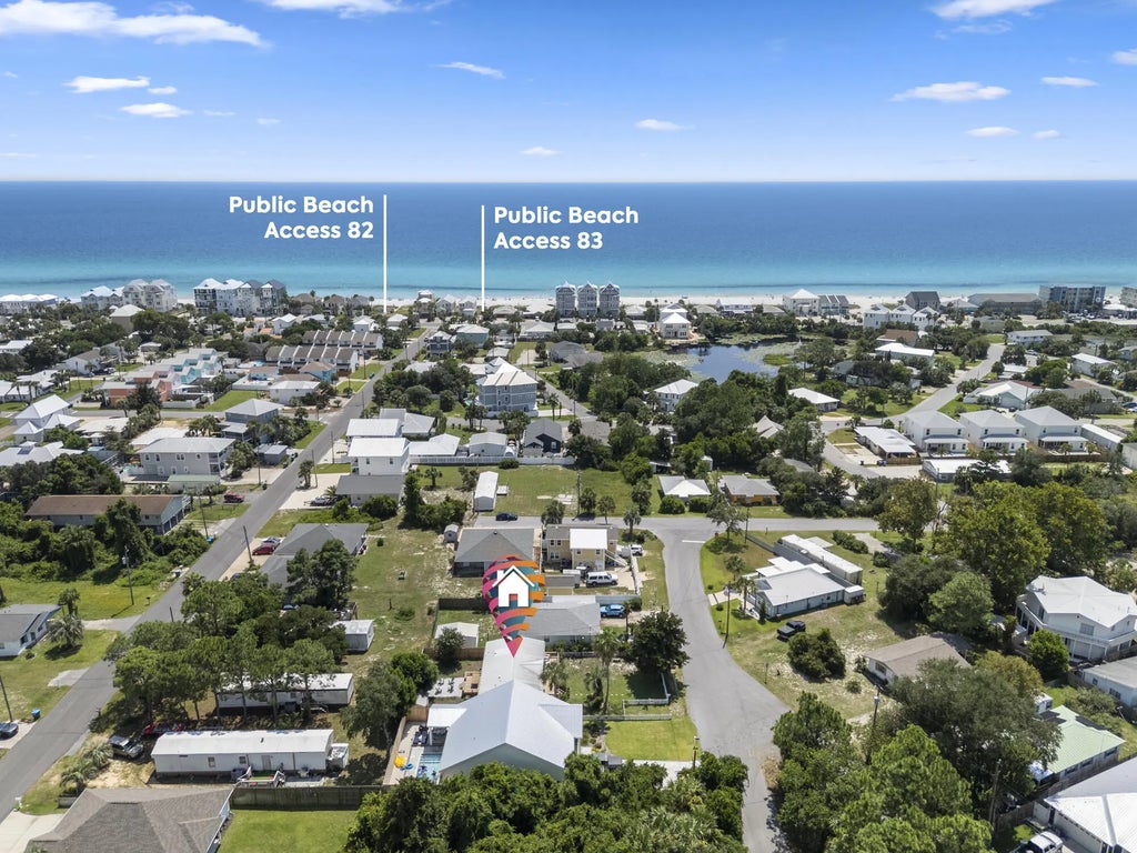 Step into a beautifully renovated coastal retreat just 3 minutes from public beach access and moments from the best dining, entertainment, and Pier Park. This bright, spacious home features elevated ceilings, wood beam accents, and new LVP flooring throughout. Enjoy a brand-new front deck, updated bathroom vanities, and two sliding glass doors that open to an entertainer's dream backyard—complete with an 8-ft privacy fence, large back deck, fire pit, and outdoor shower. Inside, three generous bedrooms offer oversized windows and abundant natural light. Outside, a convenient storage shed provides extra space for tools and gear. Fully updated and perfectly positioned for beach living or short-term rental income, this home delivers comfort, style, and unbeatable convenience. Move-in ready.